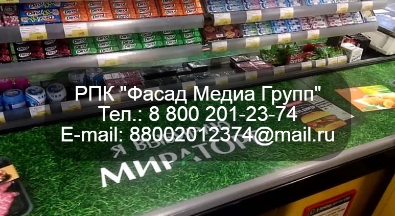 Для получения коммерческого предложения по размещению рекламы на кассовых лентах в супермаркетах обращайтесь в РПК «Фасад Медиа Групп» по телефону: 8 800 201-23-74 или отправьте заявку на почту: 88002012374@mail.ru. Будем рады сотрудничеству.